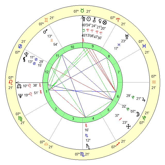 | Neptune | 19 Leo 51 | 0 Aries 33 | 21 Leo 29 |