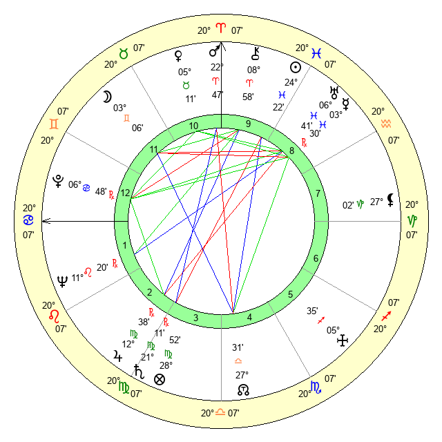 | Mars | 22 Aries 47 | 19 Cancer 9 | 5 Cancer 46 |