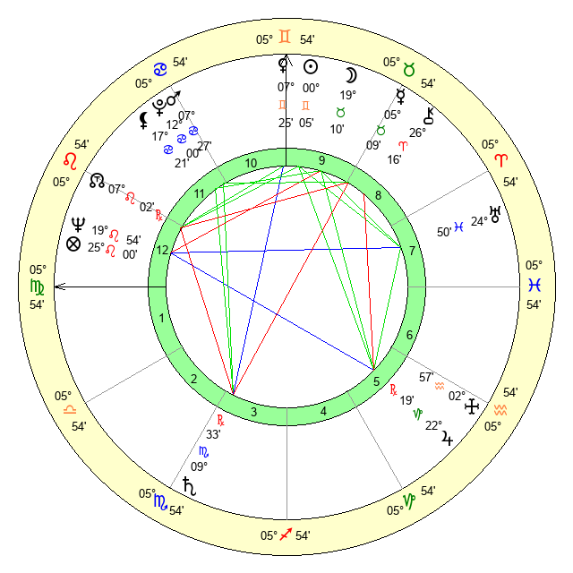 | Sun | 0 Gemini 6 | 0 Gemini 53 | 5 Virgo 49 |
