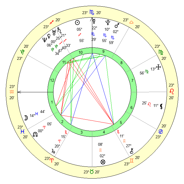 | Moon | 14 Pisces 41 | 11 Pisces 51 | 2 Leo 33 |