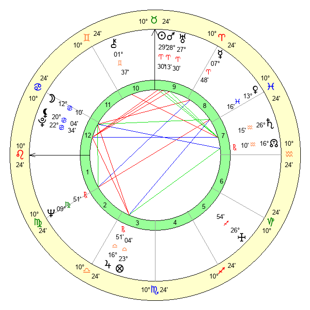 | Sun | 29 Aries 30 | 0 Taurus 27 | 26 Cancer 52 |