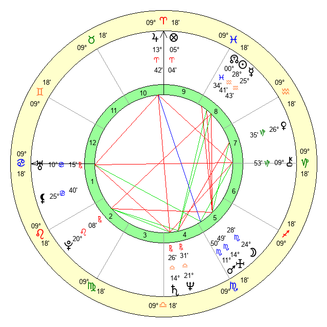 | Moon | 24 Scorpio 27 | 4 Scorpio 37 | 2 Leo 48 |