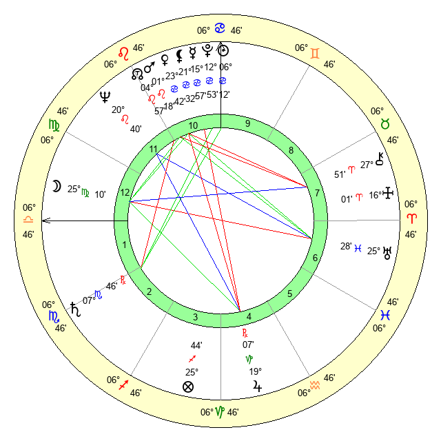 | Moon | 25 Virgo 2 | 16 Leo 28 | 5 Gemini 38 |