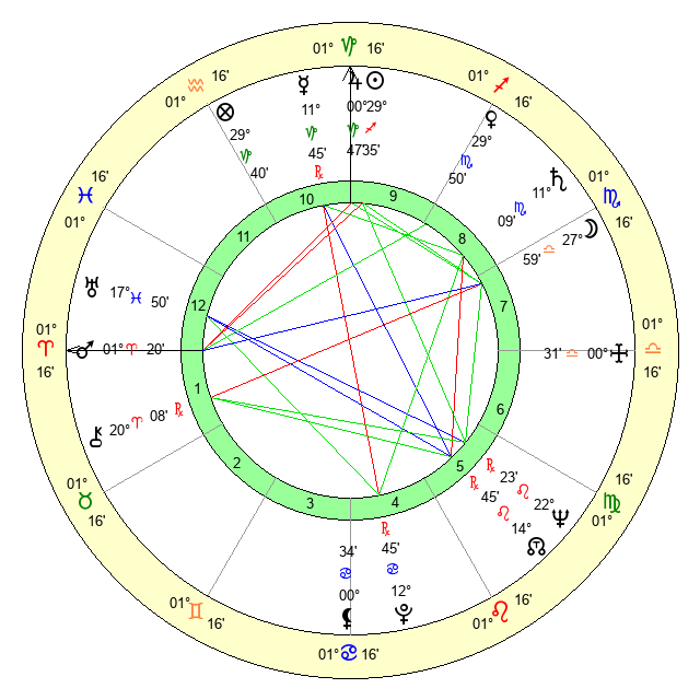 | Venus | 29 Scorpio 51 | 16 Aquarius 26 | 4 Aries 27 |