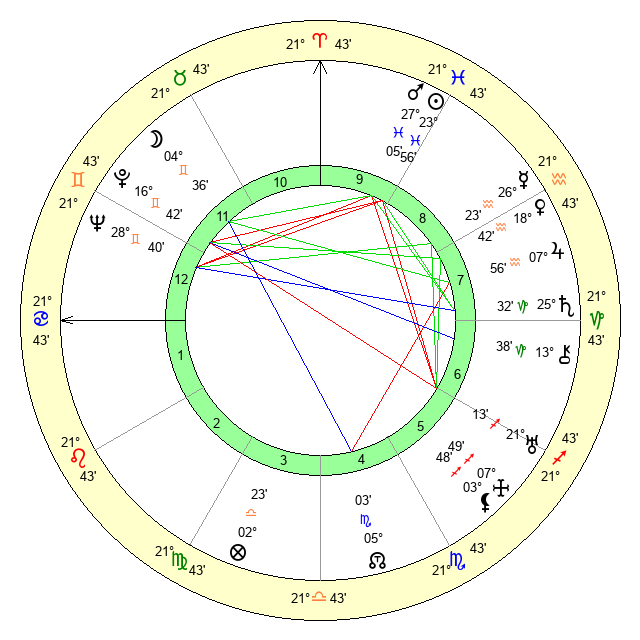 | Moon | 4 Gemini 39 | 7 Libra 52 | 6 Sagittarius 17 |