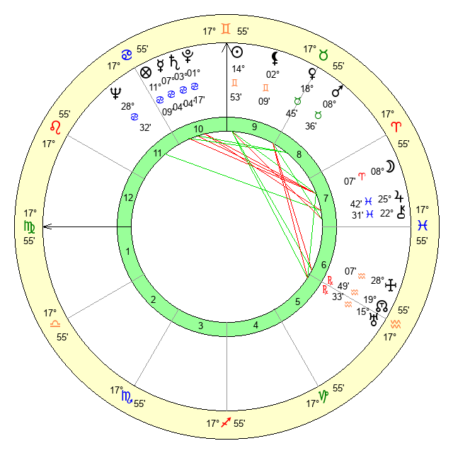 | Sun | 14 Gemini 53 | 16 Gemini 14 | 0 Libra 33 |