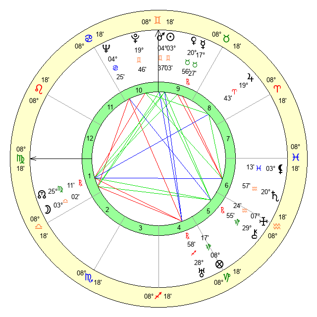 | Sun | 3 Gemini 3 | 3 Gemini 46 | 29 Virgo 14 |