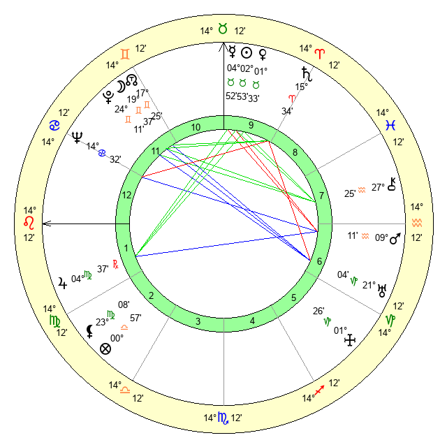 | Venus | 1 Taurus 34 | 26 Pisces 44 | 23 Virgo 35 |