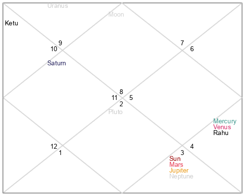 | Rahu | 13 Leo 25 | 21 Pisces 46 | 7 Leo 7 |