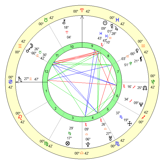 | Mars | 0 Gemini 42 | 17 Cancer 9 | 0 Cancer 13 |