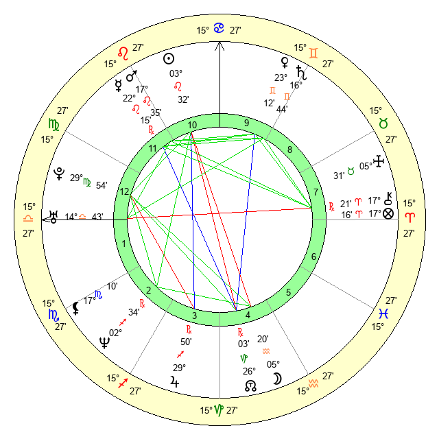| Jupiter | 29 Sagittarius 38 | 10 Cancer 31 | 29 Sagittarius 9 |