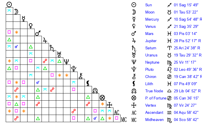 Saturn | 25 Aries 34 | 12 Pisces 41 | 26 Aries 53 |