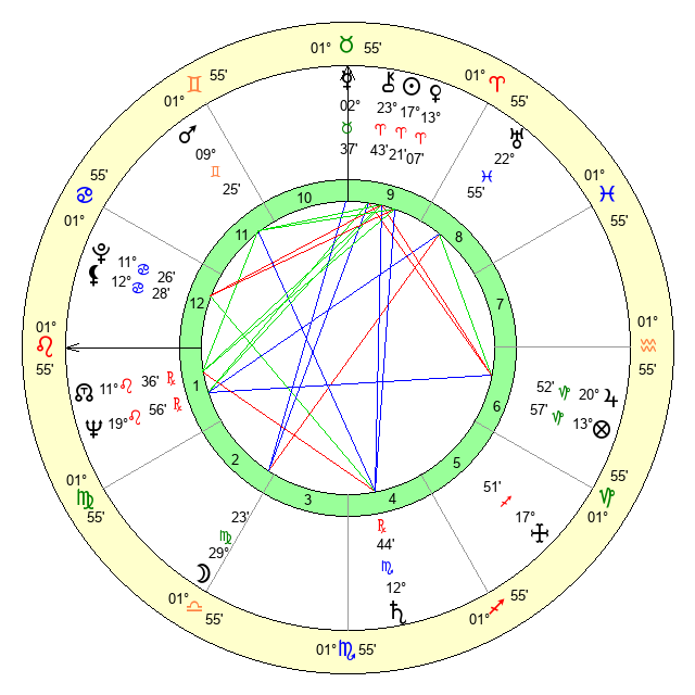 | Moon | 29 Virgo 25 | 19 Leo 20 | 7 Gemini 45 |