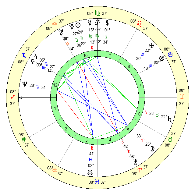 | Mercury | 15 Virgo 13 | 28 Virgo 43 | 27 Scorpio 56 |