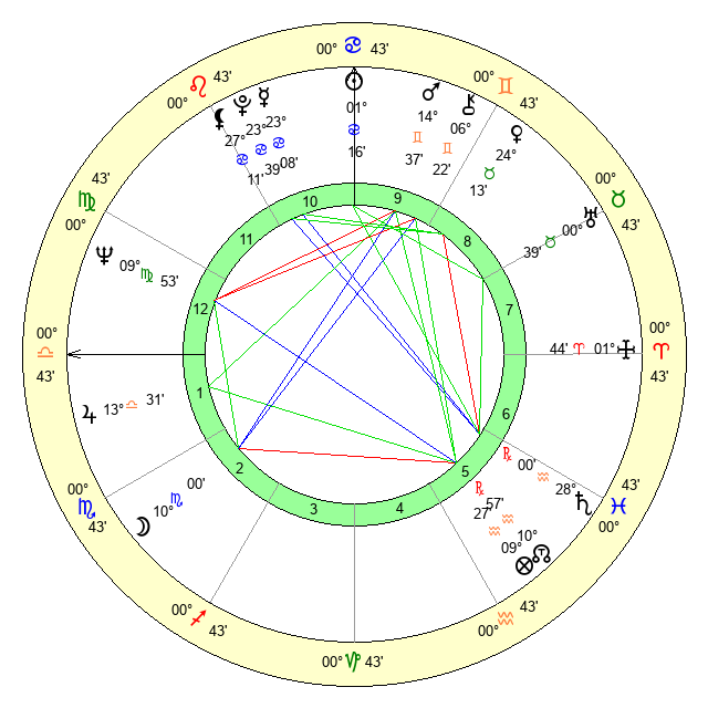 | Sun | 1 Cancer 16 | 2 Cancer 14 | 28 Virgo 44 |