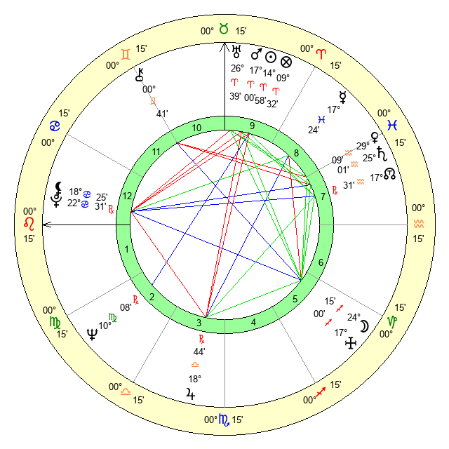 | Sun | 14 Aries 58 | 15 Aries 55 | 12 Cancer 43 |