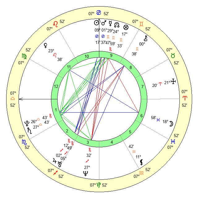 | Mars | 1 Cancer 38 | 8 Virgo 11 | 29 Cancer 22 |