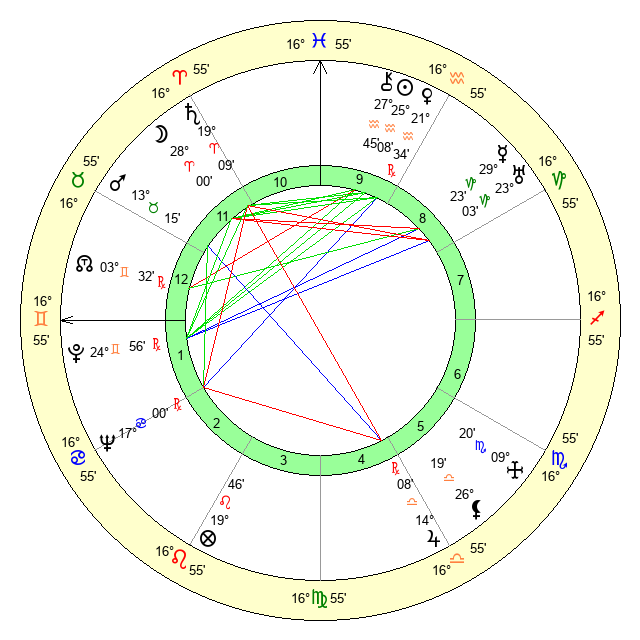 | Moon | 27 Aries 56 | 20 Virgo 25 | 17 Cancer 18 |