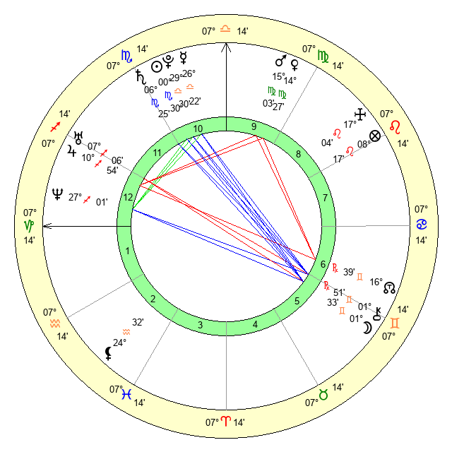 | Venus | 14 Virgo 28 | 13 Libra 12 | 28 Libra 39 |