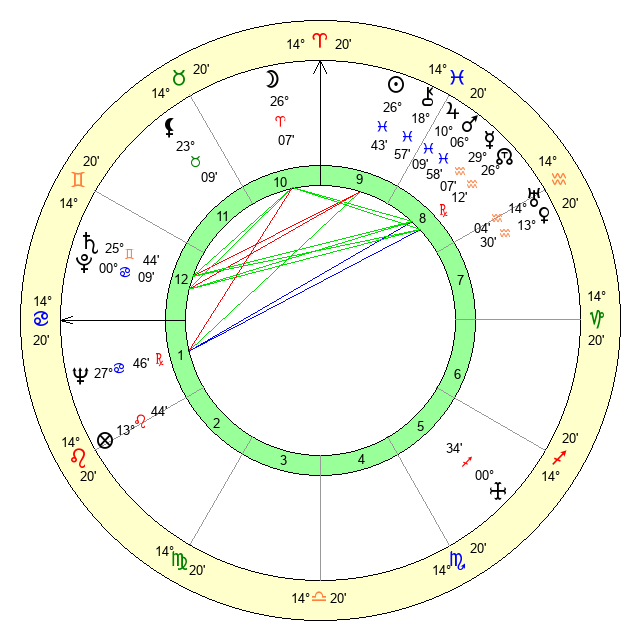 | Sun | 26 Pisces 43 | 28 Pisces 3 | 13 Cancer 14 |