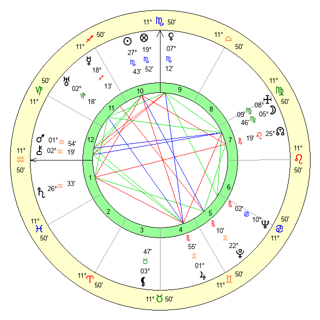 | Moon | 5 Virgo 47 | 3 Sagittarius 16 | 9 Aquarius 12 |