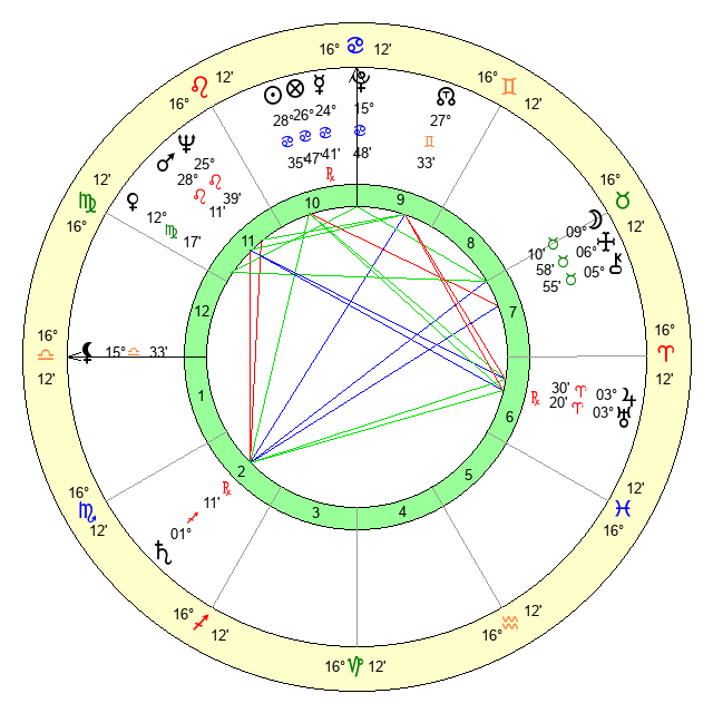 | Sun | 28 Cancer 36 | 29 Cancer 51 | 3 Scorpio 59 |