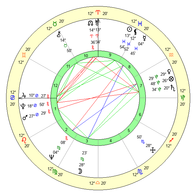 | Mars | 27 Cancer 29 | 17 Cancer 32 | 28 Leo 20 |