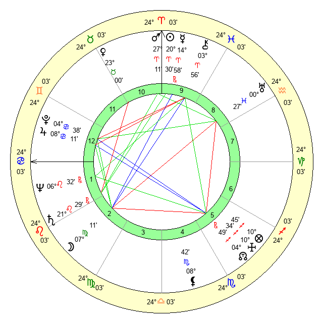 | Moon | 7 Virgo 9 | 4 Libra 45 | 22 Cancer 18 |
