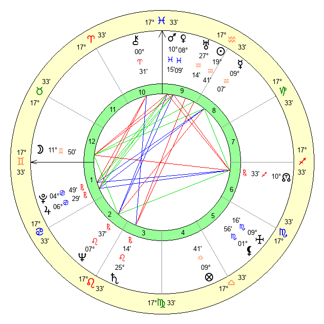 | Moon | 11 Gemini 55 | 14 Cancer 0 | 21 Aries 19 |
