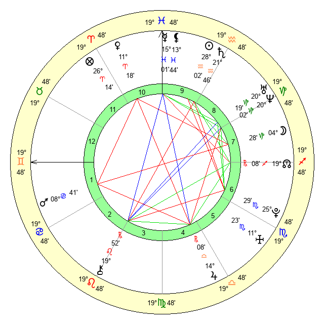 | Moon | 4 Capricorn 23 | 14 Libra 27 | 1 Pisces 45 |