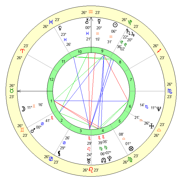 | Moon | 11 Gemini 16 | 1 Capricorn 41 | 4 Libra 35 |