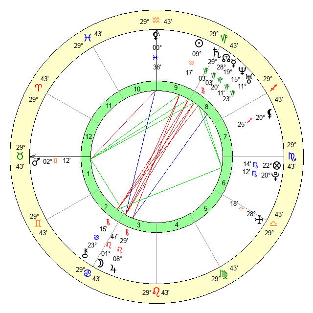 | Saturn | 29 Capricorn 5 | 17 Pisces 6 | 2 Aquarius 49 |
