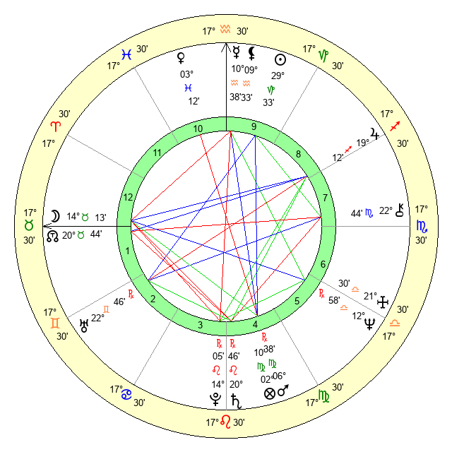 | Venus | 3 Pisces 13 | 17 Pisces 38 | 2 Gemini 16 |