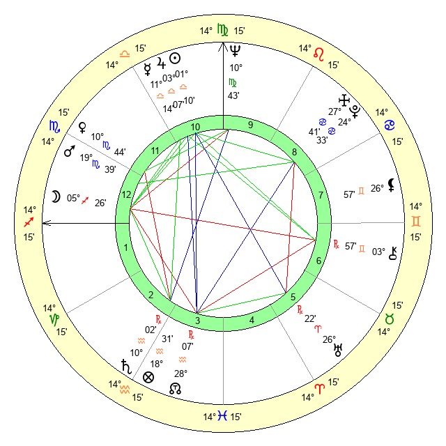 | Neptune | 10 Virgo 43 | 0 Aries 42 | 12 Virgo 21 |
