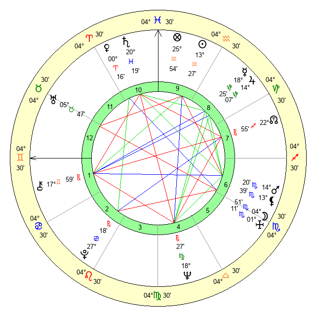 | Neptune | 18 Virgo 27 | 28 Pisces 1 | 16 Virgo 20 |