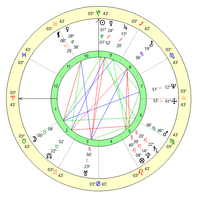 | Pluto | 14 Leo 38 | 2 Aquarius 28 | 12 Leo 58 |