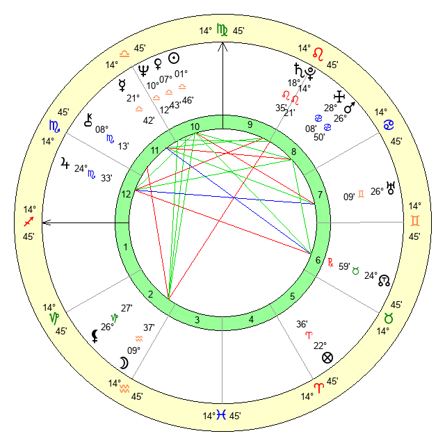 | Neptune | 10 Libra 13 | 0 Aries 41 | 12 Libra 41 |