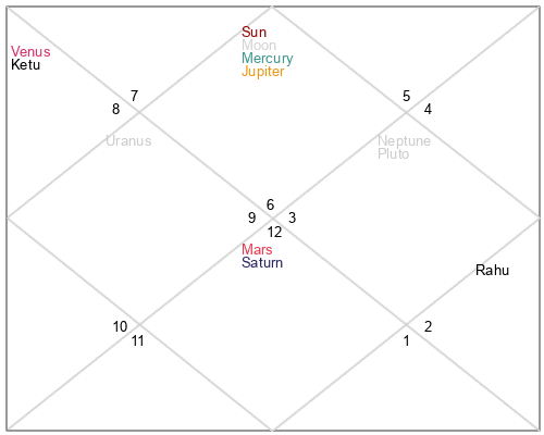 | Ketu | 9 Sagittarius 57 | 16 Virgo 21 | 3 Sagittarius 49 |