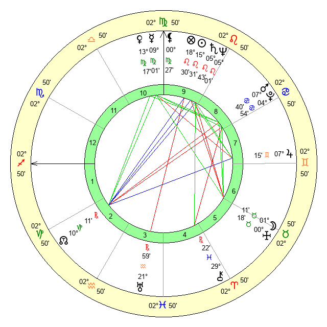 | Venus | 13 Virgo 18 | 9 Cancer 55 | 18 Capricorn 58 |
