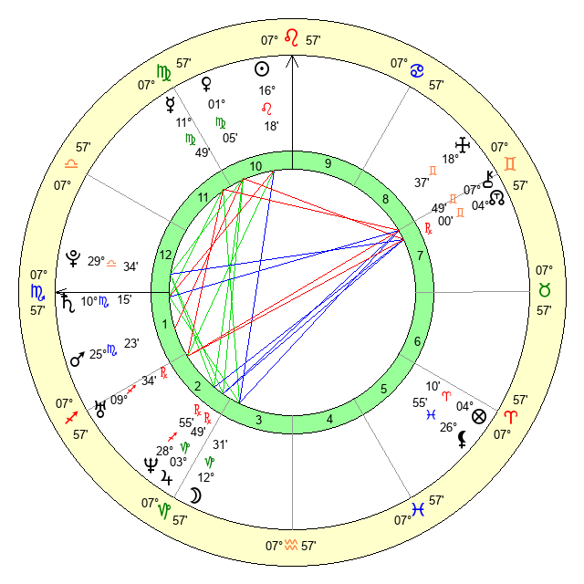 | Mercury | 11 Virgo 49 | 4 Leo 37 | 9 Virgo 15 |