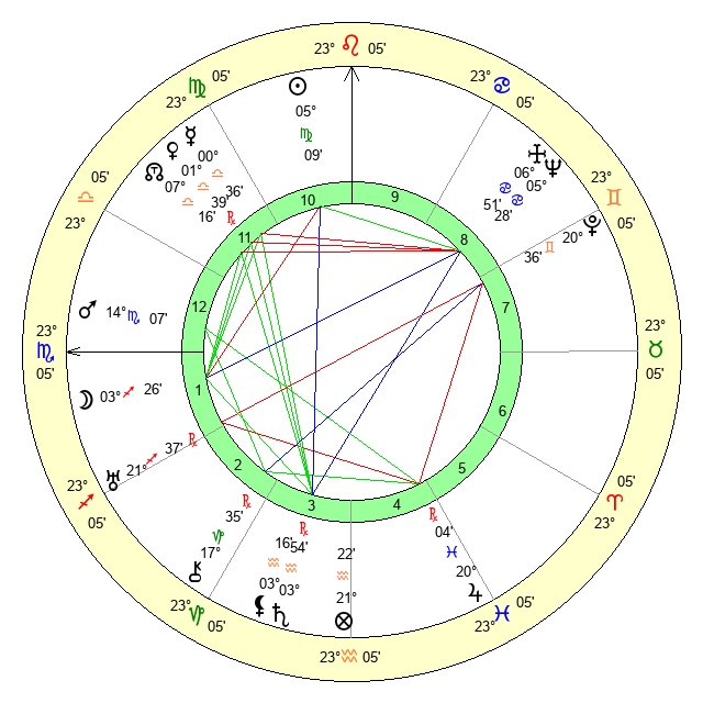 | Venus | 1 Libra 38 | 4 Leo 48 | 22 Scorpio 31 |