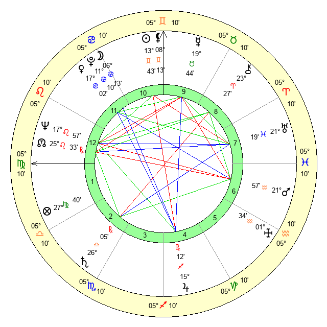 | Sun | 13 Gemini 43 | 14 Gemini 17 | 20 Virgo 34 |