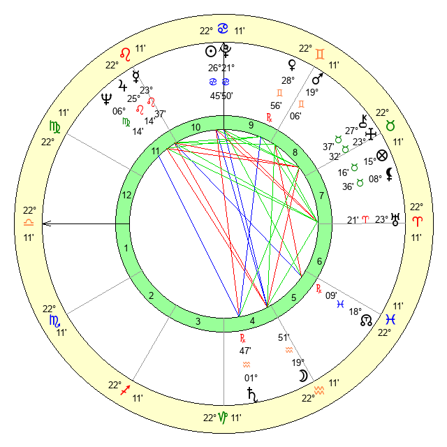 | Sun | 26 Cancer 46 | 27 Cancer 16 | 27 Libra 5 |