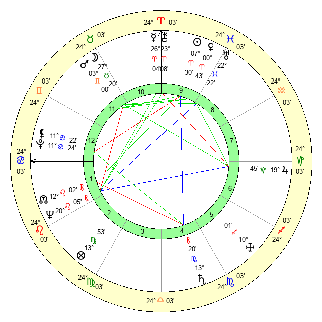 | Pluto | 11 Cancer 24 | 3 Aquarius 30 | 13 Cancer 6 |