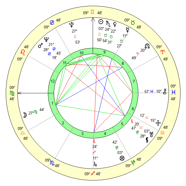 | Moon | 27 Virgo 48 | 10 Taurus 57 | 18 Scorpio 43 |
