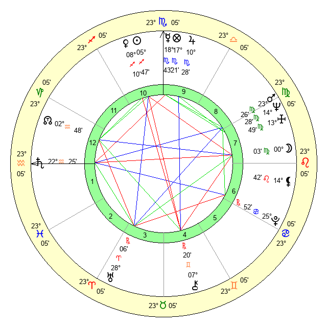 | Neptune | 14 Virgo 28 | 29 Pisces 24 | 13 Virgo 20 |
