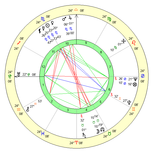 | Venus | 20 Scorpio 44 | 11 Scorpio 56 | 14 Aries 39 |