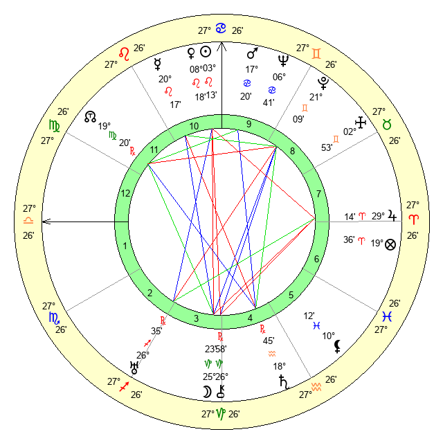 | Moon | 25 Capricorn 17 | 27 Leo 48 | 20 Gemini 58 |