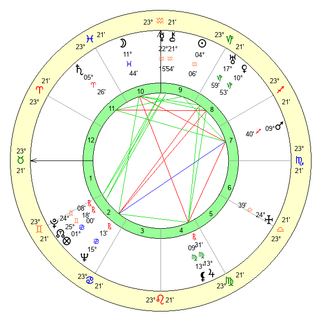 | Venus | 10 Capricorn 54 | 21 Pisces 17 | 4 Gemini 51 |