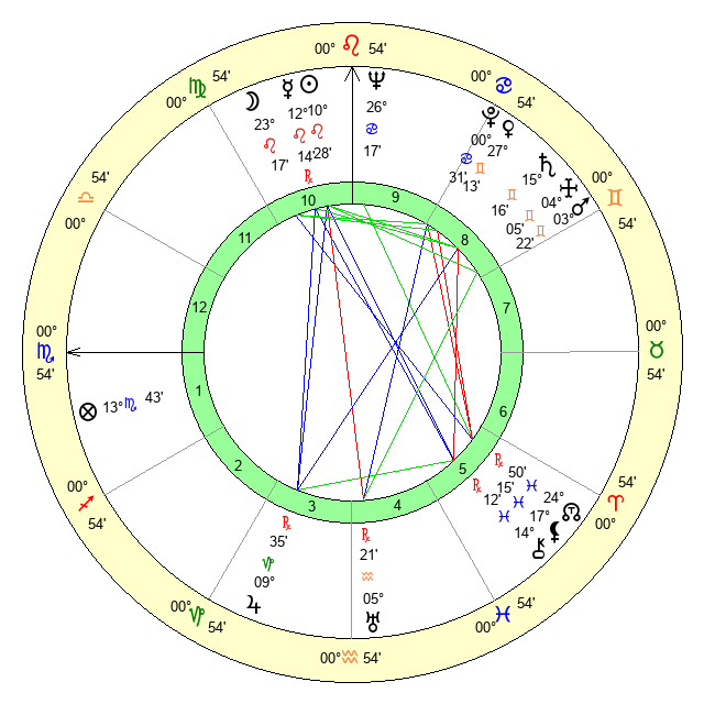 | Moon | 23 Leo 12 | 2 Sagittarius 27 | 28 Virgo 33 |